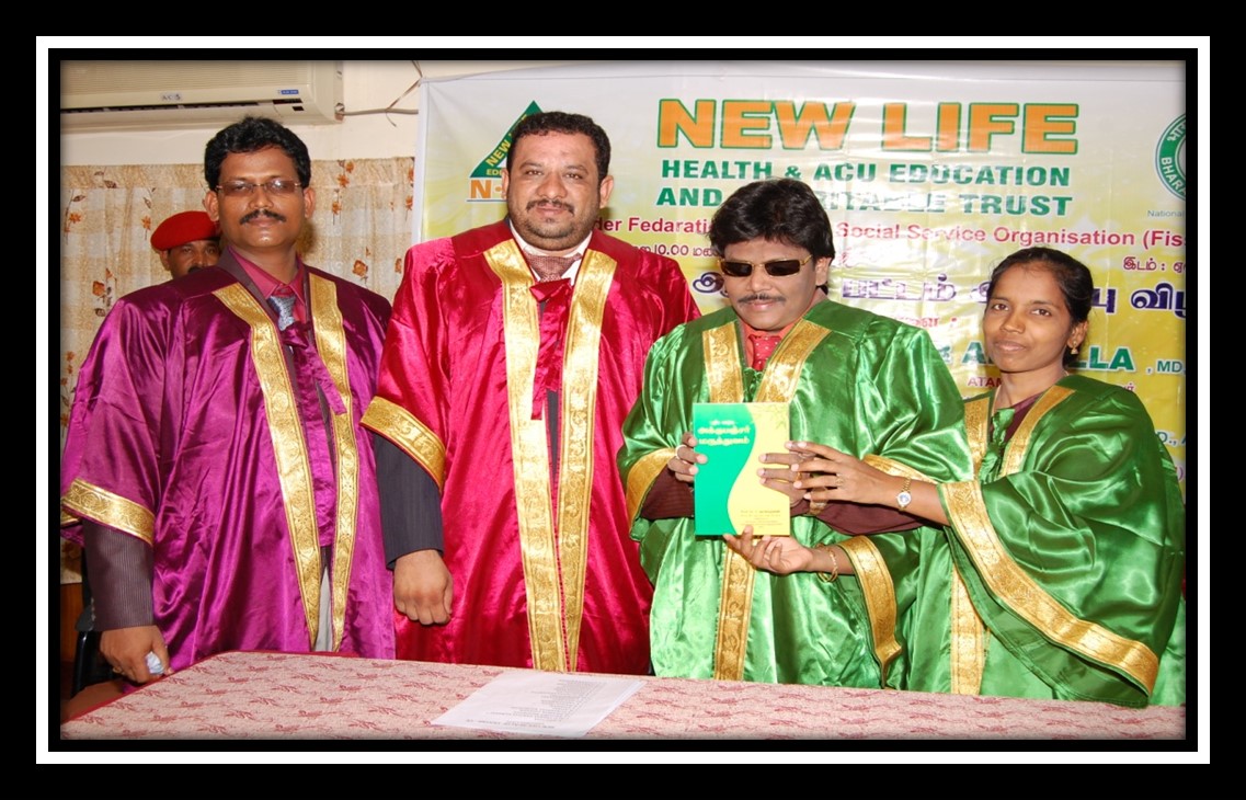 Dr. C. Gnanamurugan M.D(Acu), M.D (A.M), Ph.D (Acu)., F.R.S.H(A.M) has founded a charitable trust in the name of “NEW LIFE HEALTH & ACU EDUCATION CENTRE AND CHARITABLE TRUST (N.L.E.C)”. He is the Managing Trustee. The trust is registered under the Indian Trust Act 1982.